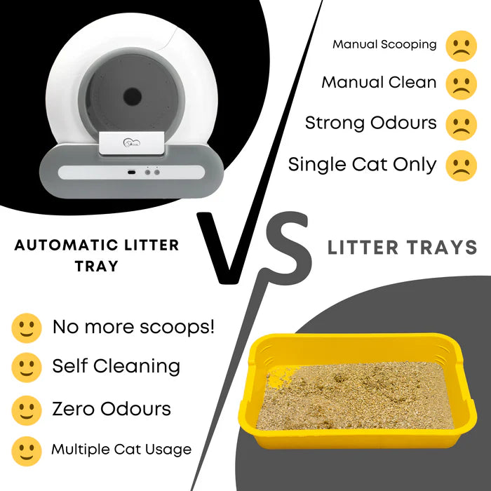 A traditional litter trayrequires daily cleaning, constant odour control, and frequent litter changes. It’s messy, time-consuming, and not the most hygienic option. That's where the automatic litter tray comes in!